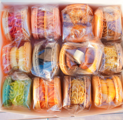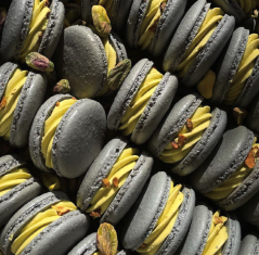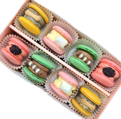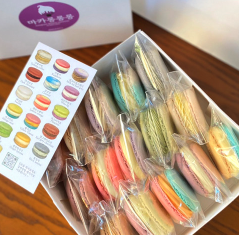 무색소 마카롱으로 색소에 대한 거부감이 없으며 드시는 분들의 건강과 달콤한 휴식을 위해 노력한다. 모든 공정 100% 수작업, 고소한 아몬드가루와 천연 앵커버터사용 4~4.3cm 정도의 적당한 크기와 다양한 맛이 특징이다.