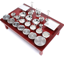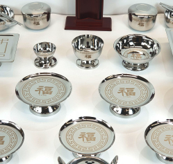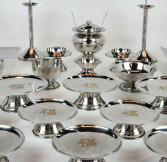위패 1p / 향로 1p / 촛대 2p / 술잔 2P 잔받침 2P / 간장그릇 1P / 탕그릇 1P / 나물그릇 1P/제기 3호 3P / 제기 4호 2P / 제기 5호 1P / 제기 6호 1P / 적들(직사각) 1P / 편들(정사각) 1P로 구성되어 있다.