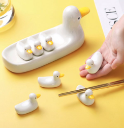 수저받침 세트 세라믹 도자기 제품 브랜드 추천 세 번째, 청년리빙 오리 수저받침 세트 제품은 테이블에 올려두기만 해도 분위기를 화사하고 사랑스럽게 만들어주는 오리가족 수저받침대 set이다. 귀여운 아기 오리 받침대 5p와 받침대를 수납해 줄 엄마 오리 받침대 10가 세트로 구성되었다. 이벤트나 파티, 디저트, 다이닝 등 다양하게 테이블을 연출할 수 있다.