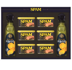 CJ제일제당 명절 선물세트 스팸 제품 추천 순위 네 번째, CJ제일제당 스팸 복합 1호 선물세트 제품은 스팸클래식 200g x 6개, 백설 카놀라유 500ml x 2개로 구성되어 있다.