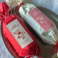 포근하고 귀여운 곰돌이가 들어간 직사각 스티커. 보기만 해도 기분이 좋아지는 색감과 그래픽이에요! 포장에 따뜻하고 사랑스러운 무드를 담을 수 있다.