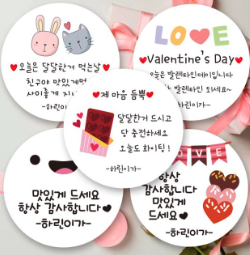 발렌타인데이 스티커 제품 추천 종류 후기 순위 일곱 번째, 하이마이럽 곰신 개별포장 스티커 주문 제작 택배 생일 조공 군인 군대 진급 발렌타인데이 제품은 원형 개별포장 스티커이다.