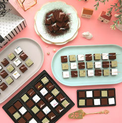 특별한 선물을 하는데 안성맞춤, 본 상품은 50여 개의 파베를 만들 수 있으며 10구 선물상자 4개를 드리고 있다. 총 4개의 선물세트를 만드실 수 있어 여러분에게 나눠 드릴 수 있다. '파베'는 프랑스어로 벽돌을 의미하는 형태의 초콜릿을 말한다.
