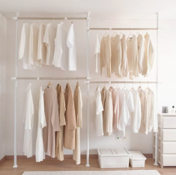 룸앤홈 행거 제품 추천 종류 후기 순위 다섯 번째, 룸앤홈 룸앤홈 x왕자행거 드레스룸 이동식 2단 행거 제품은 왕자행거는 놀라울 정도로 자유로운 확장성을 가지고 있다. 단순히 좌우로 확장되는 것뿐만 아니라 처지지 않고 견고하다. 가로봉 기준 최소 1m에서 최대 1.7m로 약 1.7배, 세로봉 기준 최소 1.7m에서 최대 확장 2.8m 약 2배이다.