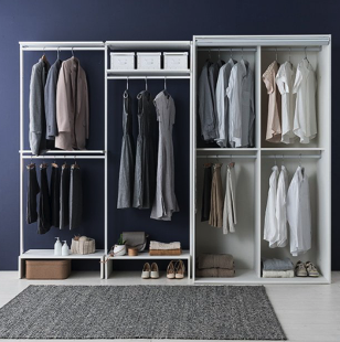 원하는 사이즈만큼 구매하여 원하는 공간에 맞춤형으로 설치가 가능하다. 나만의 드레스룸을 만들 수 있다. 양심 있게 품질은 향상하고 거품을 뺀 가격이 특징이다.