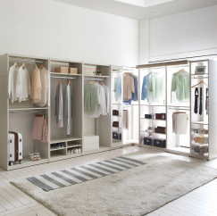 콤비롤을 추가 장착하면 더욱 완벽한 드레스룸을 만들 수 있다. 3면이 막혀 있어 옷을 먼지나 습기로부터 보호해 준다. 시스템 행거는 사면이 뚫려 있어서 옷이 먼지와 습기에 노출된다.