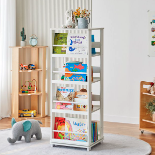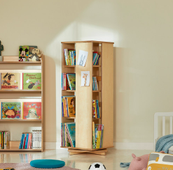 우리 아이 첫 회전 책장으로 적합한 비비 2단 회전책장이다. 교구나 인테리어 소풍을 수납하 수 있으며, 360도 양방향으로 회전이 가능한 것이 특징이다.