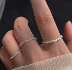 여성 여자 실버 은반지 제품 추천 종류 순위 네 번째, 미녀놀이터 실버925 순은 여자 은반지 눈꽃 체인 레이어드반지 R10 제품은 눈꽃체인 또는 글리터체인의 반지이다. 반짝반짝 빛나면서 손가락을 여리여리하게 보이는 반지이다.