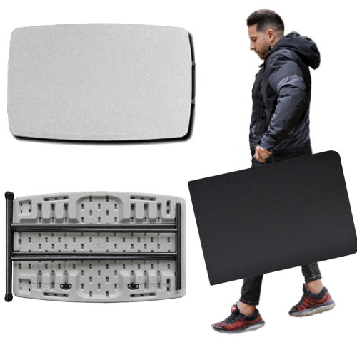 5초 만에 빠르게 펼치고 접을 수 있는 접이식 테이블이며, 다칠 염려 없는 라운딩 처리된 상판 모서리, 부식 걱정 없는 분체도장 스틸 프레임, 어느 곳이든 잘 어울리는 블랙 & 화이트 색상과 디자인을 선보입니다.