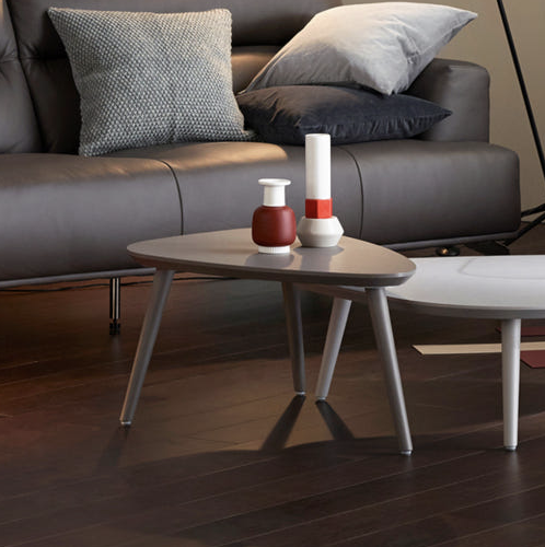 공간이나 상황에 맞춰 자유자재로 배치하기에 좋은 삼각형 디자인의 테이블로 좌식테이블로도 활용 가능하며, 모서리를 라운딩 처리해 세련되면서도 안전하게 디자인되었습니다. 다리는 자연스러운 나무결이 드러나는 원목다리로 튼튼하고 고급스러운 디자인입니다.