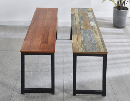 3. 판다스퀘어 철제 벤치형 카페 긴 식탁의자 일자 멀바우 2인용