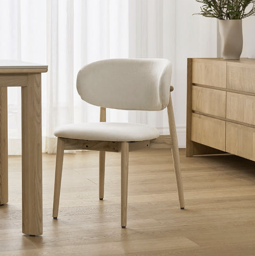 까사미아 올비아 암체어는 소파나 다른 패브릭 소재에 많이 사용되는 화이트 부클을 체어에 적용하여 다이닝 공간 속에 고급스러움을 더할 수 있습니다.