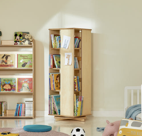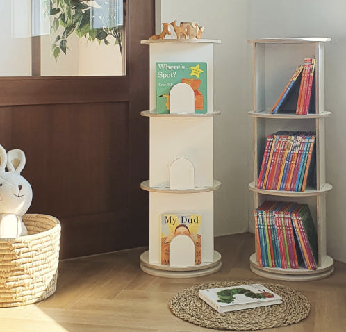 6. 맘스보드 레브라운드 4단 회전책장 (완제품) / 유아 아동 자작 원목 교구장 책장 수납