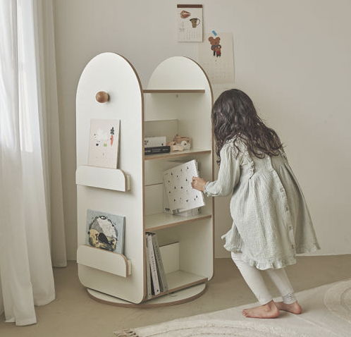 비앙스 VONI 편백나무 원형 회전책장 4단은 전체 모서리를 라운드 처리하여 아이들이 안전하게 사용할 수 있으며, 360도 회전으로 어떤 방향에서도 사용 가능해 자유로운 공간 배치가 가능합니다.