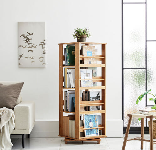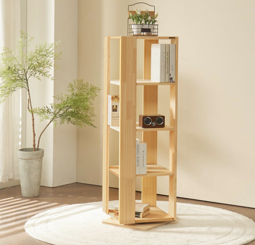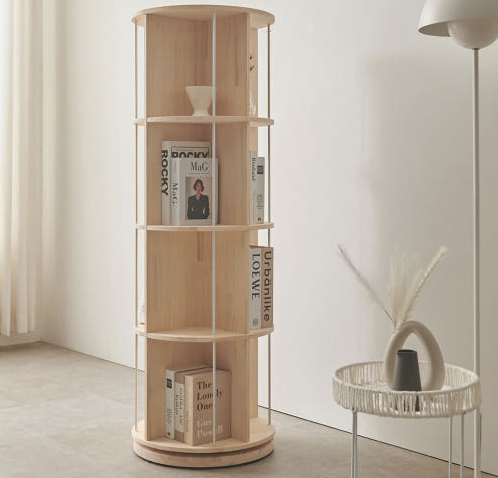 3. 착한목수 슬림 원목 회전책장 거실 책장 교구장 고무나무 4단