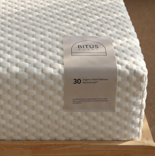 비투스 오가닉 호텔 매트리스 30cm 퀸 사이즈 Q는 초고밀도 메모리폼 X 라텍스로 눕는 즉시 5성급 호텔에 누워 있는 듯한 고급스러운 쿠션감을 느낄 수 있으며, 압도적인 지지력과 내구성의 독립 포켓 스프링을 적용하였습니다. 쿠션감에 대한 자신감으로 선택한 오가닉 3중직 니트는 야들야들하고 부드러운 특성 때문에 내장되어 있는 고밀도 메모리폼의 쿠션감이 온전히 느껴지는 최고급 원단입니다.