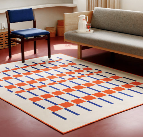 3. 바이빔 체크스퀘어 먼지없는 단모 러그 북유럽 거실 카페트 블루오렌지 100x150
