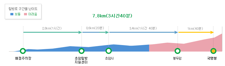 - 구간: 배점주차장 → 초암탐방지원센터 → 초암사 → 봉두암 → 국망봉
