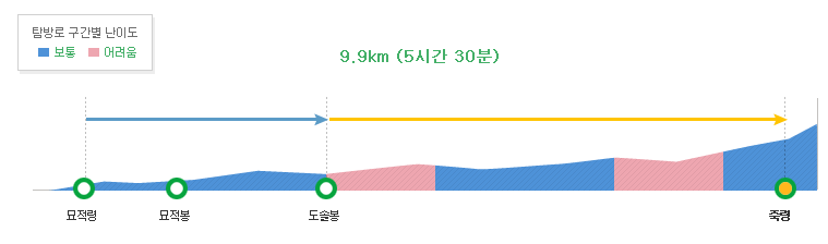 - 구간: 묘적령 → 묘적봉 → 도솔봉 → 죽령