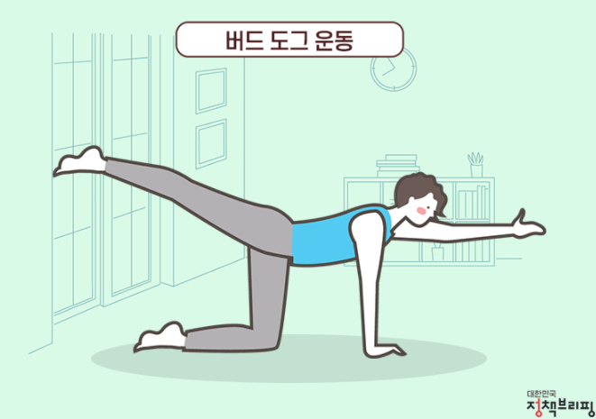 ■ 허리통증 완화운동 스트레칭 방법 5 - 버드 도그 운동칭