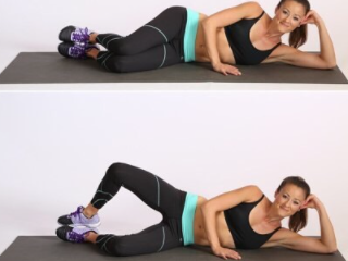 매트에 누워서 팔을 몸 옆에 두고, 바닥으로 밀면서 엉덩이를 공중으로 들어준다. 그리고 발꿈치를 들고, 운동 강도를 높인다. 그런 다음 발가락으로 지탱하면서 다리를 벌렸다가 오므리는 동작을 추가한다. 1분 동안 반복한다.