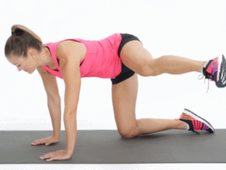 오른쪽 손과 무릎을 매트에 대고 시작한다. 왼손은 옆구리에 가져가거나 배에 대고, 오른쪽 어깨와 손목을 같은 라인으로 맞춘다. 복부에 힘을 주면서 왼쪽 다리를 공중으로 뻗어준다. 그리고 다리를 내렸다가 드는 동작을 30초 반복한다. 그런 다음 자세를 바꿔서 오른쪽 다리를 들었다가 내리는 동작을 30초 진행한다.