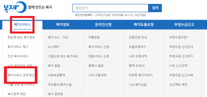 복지로 홈페이지로 이동하면 쉽게 모의계산을 해볼 수가 있다. 하단의 링크를 클릭하면 바로 해당 페이지로 이동한다.