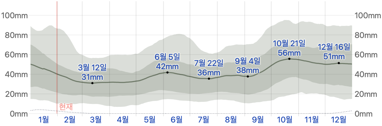 런던은 매달 강수량의 변화가 약간 있다. 런던에서는 비가 일 년 동안 오는데 비가 가장 많이 오는 달은 10월이며, 평균 55밀리미터이다. 런던에서 비가 가장 적게 오는 달은 3월이며, 평균 강우량은 31밀리미터이다.