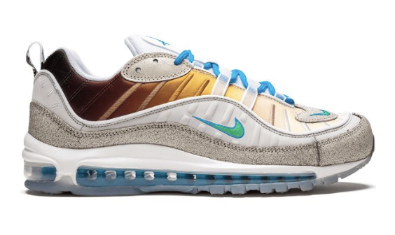 그랜드 캐니언에서 영감을 받아 1998년 만들어진 나이키의 스니커즈 에어맥스 98. 발매 당시 큰 조명을 받지는 못했지만 2016년 슈프림과의 협업 이후 재조명되었다. 역시나 OG 컬러 군이 인기가 많고 그중 건담 컬러가 가장 인기가 많다.