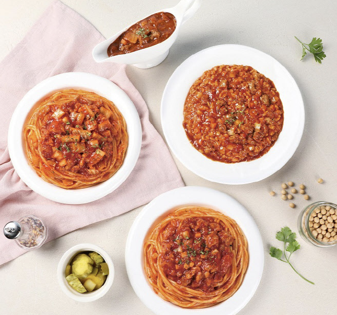 프레시지는 피자 프랜차이즈 피자알볼로와 협업한 대체육 파스타 3종을 출시했다. 식물성 라구 파스타 3종은 피자알볼로의 시그니처 소스와 식물성 대체육을 활용한 렌지업 메뉴다.