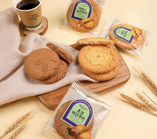 해당 제품의 이름은 아몬드 비건쿠키와 초코 비건쿠키로, 쌀, 미강, 귀리, 현미, 옥수수의 다섯 가지 건강한 곡물에 고소한 아몬드와 달콤한 초코를 첨가해 풍미를 더했다. 편의점 판매가는 2,400원이다.